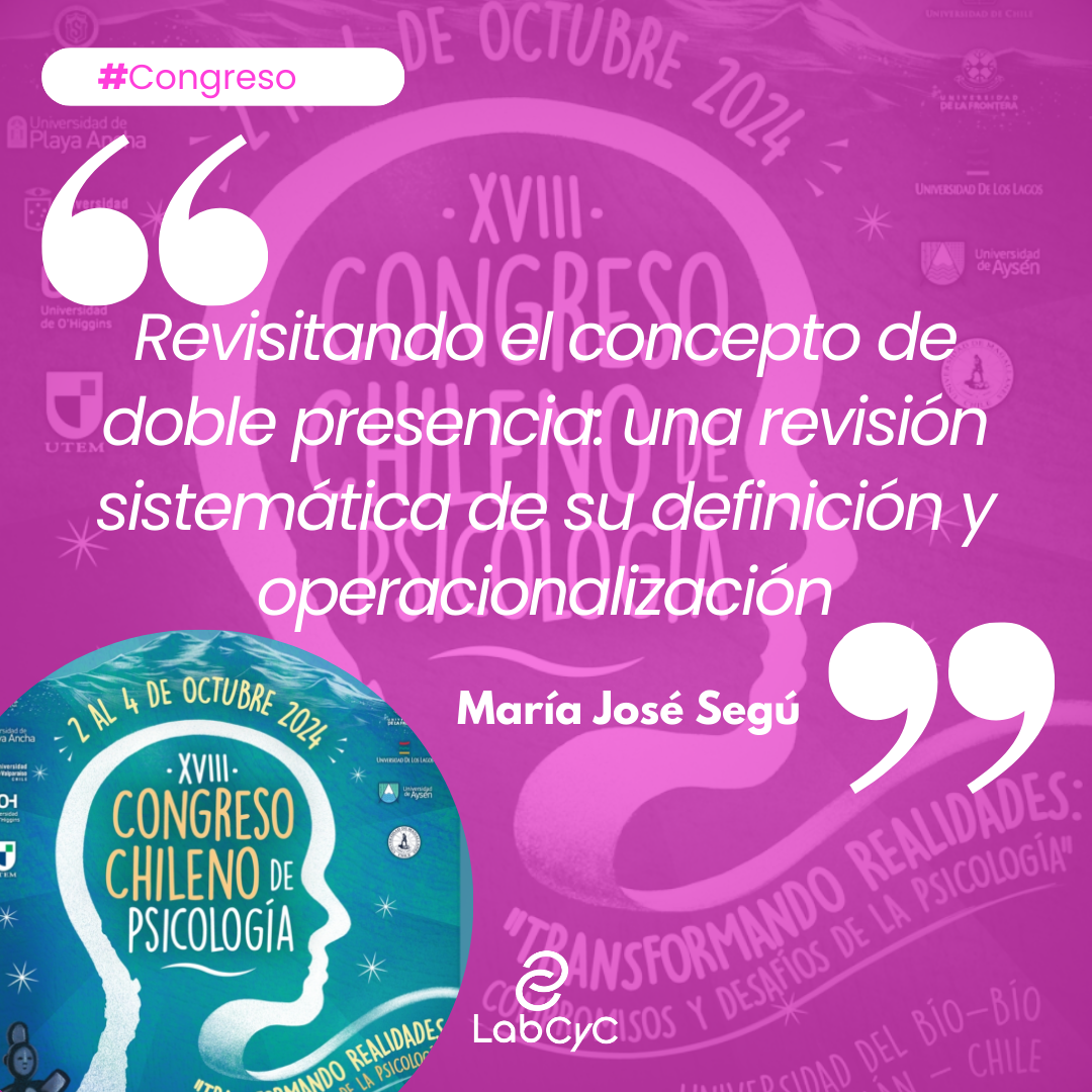 Nos enorgullece compartir la participación de dos de nuestras integrantes de LabCYC en el XVIII Congreso de Psicología del CUECH, que tuvo lugar del 2 al 4 de octubre en la ciudad de Chillán, organizado por la Escuela de Psicología de la Universidad del Bío Bío.